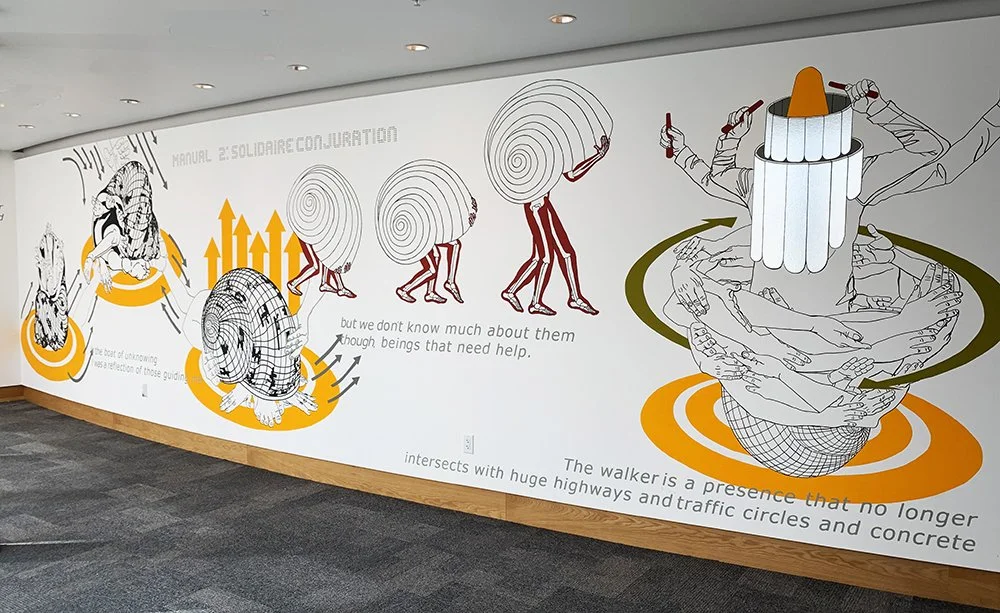 Working in step with communities in Philadelphia, newcomers and long-time residents trust Ortiz-Pagán to hold and express their stories in his artwork. He is a gentle and thorough listener. He is a considerate community member who feels acute accountability to his neighbors. He’s been selected, again and again, as a visionary –one who can hold the truths of community and is given permission to interpret our lived experiences into the future. He lights little fires, whispers the change-making prayers, and does the work that community artists do.