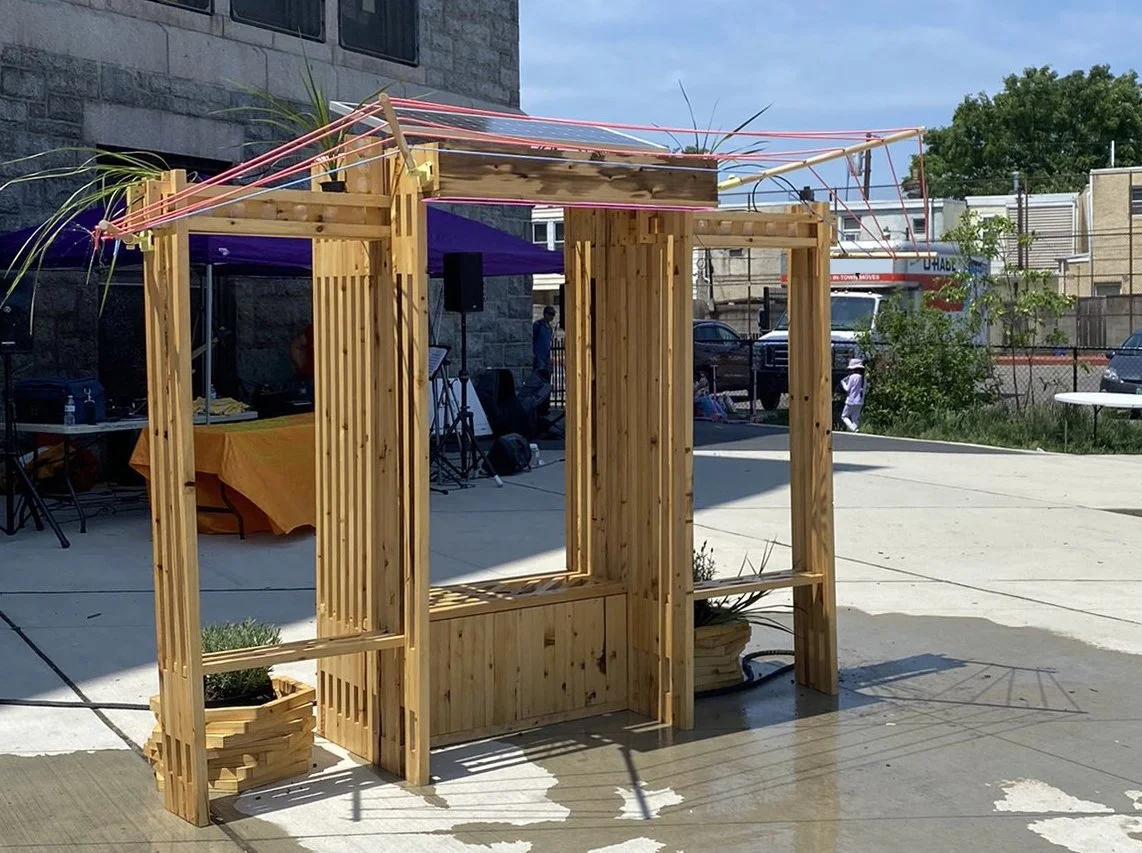On May 21, 2022, we unveiled "La Sombrilla" in Southeast Philly, amidst scorching temperatures of 100°F. This moment served as a poetic action to illustrate the tangible impact of heat. The event, known as the "La Sombrilla Block Party," marked the culmination of a two-year project called Heat Response, which aimed to organize people in #SoutheastPhilly around the context of climate change, particularly in one of the city's largest immigrant communities. During the event, attended by numerous individuals, people gathered and sought relief from the heat with the water provided by "La Sombrilla."