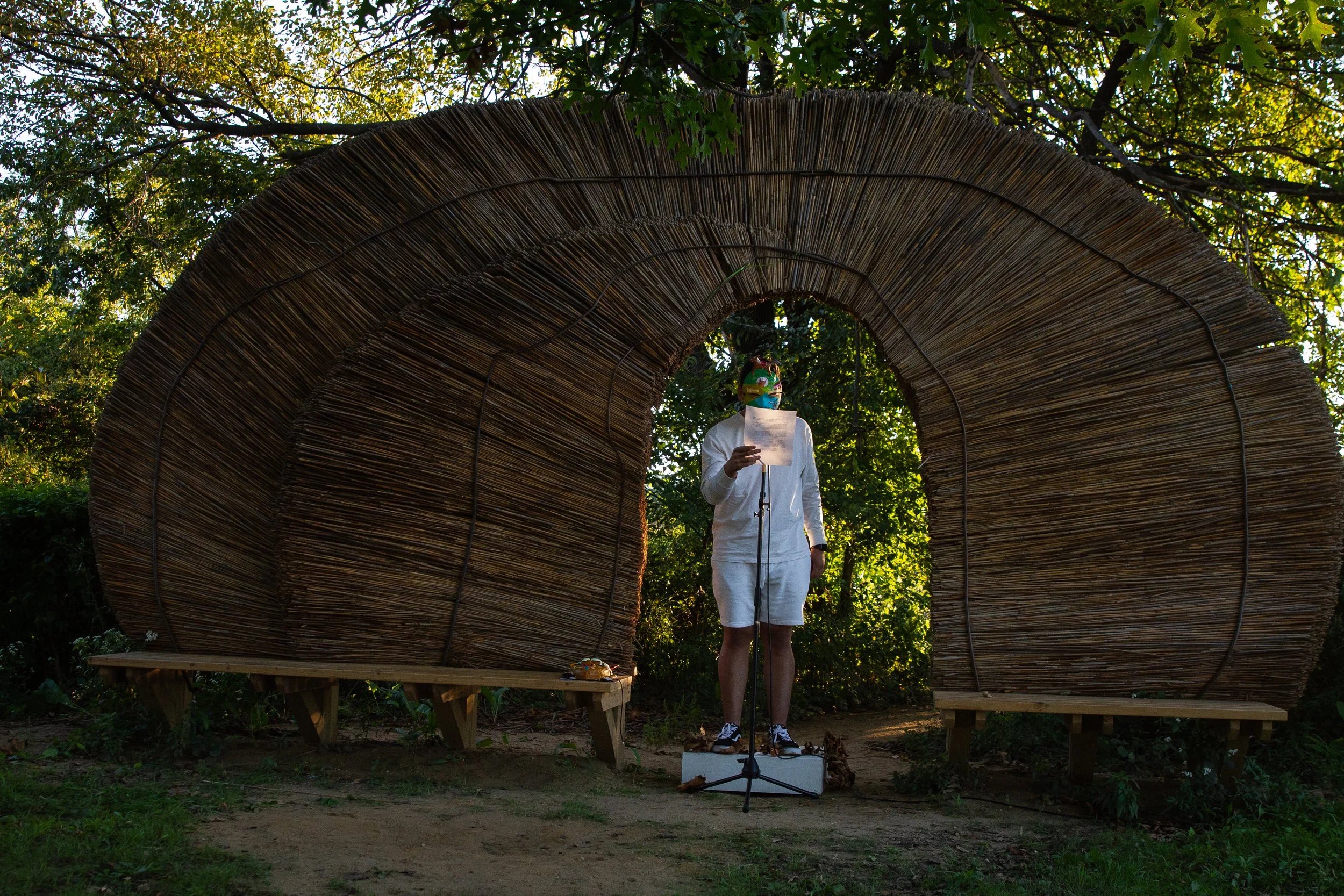 was a performance/ritual/ceremony organized and directed by Jose Ortiz-Pagan and Mauricio Pérez in response to Sarah Kavage eco sculpture, Confluence. The collaboration also included the participation of youth groups from La Puerta Abierta.